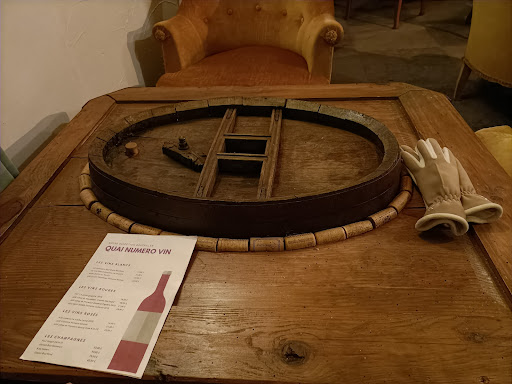 Très bon établissement, dans la vieille ville de Montbrison, sur les quais de la rivière Vizézy. Très bon accueil. Beau cadre, malgré l'exiguité des lieux : le rez-de-chaussée, "tout en longueur", mène à une pièce à l'ambiance "cave à vin", au décor soigné, suggestif du concept et très "cosy" (fauteuils "crapauds", canapé, tables basses façon "palette"...). Les murs s'ornent, notamment, de caisses de bouteilles. On ne sert pas dans la (ou les) caisse(s) ! Mais on attend, pour se faire servir...au verre, par exemple. Mesdames, messieurs, que prendrez-vous ? Ma suggestion : un verre de rouge (Cairanne), accompagné de son plateau mixte de fromage et charcuterie (12 €, le plateau). Ou bien du blanc ? Courez-y ! Sans mauvais jeu de mots, ni liaison hasardeuse avec le...
