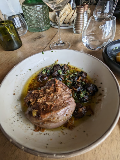 Read moreExpérience d’un dimanche soir dans ce jolie restaurant . Très beau cadre, décoration avec beaucoup de goût, extérieur comme intérieure. Nous étions une table de 9 couverts en ce dimanche soir, 3 autres tables de deux personnes étaient présentes. Première commande des entrées, très jolie présentation, excepté le bout de plastique sur le tartare de veau qui n’a pas semblé perturbé le serveur. Deuxième commande pour les plats, premier oublie pour un filet mignon servie 20min après toute la table. Vient la commande des desserts, je commande une crème brûlée avec une petite blague « pas trop brûlée et sans champignons » à laquelle le serveur rigole bien , et pourtant nous attendons toujours la crème brûlée … nous lui faisons remarqué mais « il ne l’a pas noté » sans excuses… Service franchement pas acceptable pour le prix des menus et...