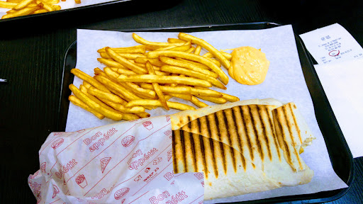 Read moreLe gars à la caisse, qui s’occupe aussi des livraisons se croit au quartier en s’embrouillant avec les clients. S’énerve tout seul et j’ai eu le privilège d’avoir des cours sur la gestion du business du tacos gratuitement... tout en et en m’expliquant que j’étais trop con pour comprendre car moi je n’avais pas de business. Sans parler de sa tenue vestimentaire. Même plus envie d’y remettre les pieds et pourtant on était de bons clients. Bravo tu as économisé 30 centimes pour un tampon, tu en as perdu au moins 100€ et largement. Et ça faut pas être con pour le comprendre sachant qu’il y a au moins 3€ de marge sur le tacos, 1€ sur les frites et 1€ sur la boisson. 2€ sur le milkshake, 30c par supplément Soit pour ma commande habituelle 7€90, oups 😬 Rentable ? Je ne crois pas... Mais bon tu voulais absolument qu’on demande à ton patron, alors vas-y, demande lui... Bref les tacos sont bon mais le mec n’est pas bon à la caisse. Adios...