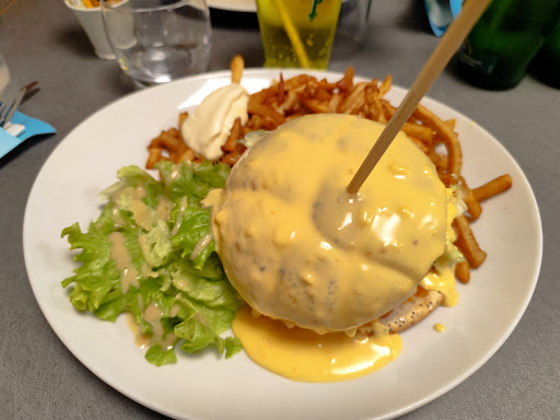 Read moreJe trouve dommage qu'il n'y est pas d'entrée proposer sauf pour le plat du jour, j'ai donc pris un menu burger avec dessert, le plat était assez bon mais malheureusement on m'a demandé la cuisson de ma viande souhaitée, j'avais donc demandé une viande saignent, mais elle était bien cuites, je trouve aussi dommage que la viande est petite par rapport au pain. Pour le dessert je trouve dommage qu'il ne propose qu'un seul, j'ai pu donc goûter une panacota au chocolat blanc et j'ai était déçu car c'est un dessert qui est sucré de base c'est pourquoi il est préférable d'ajouter un coulis au fruit acidulée et non un pseudo coulis au chocolat blanc, et malheureusement trop gélatineux. Le service était assez bon même si la serveuse nous a installé dans la salle intérieur alors que nous voulions manger en extérieur en vu...