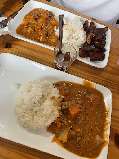 I've had the wonderfully flavoured Yassa and Maffe dishes with chicken and rice and with attieke. I recommend Yassa as it seems flavoured better, but you can't go wrong with both.