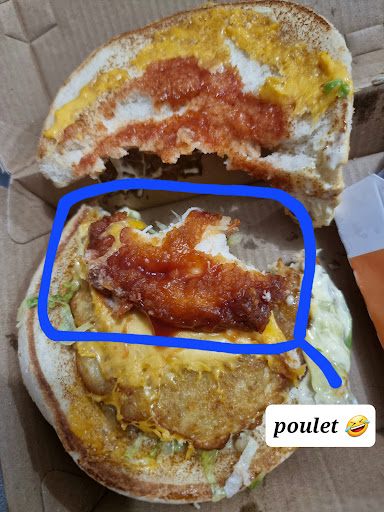 La serveuse nous apris la moitié de la commande puis a disparu un autre gars assez sympa a fini la serveuse apres lui avoir fait la remarque pour de l. eau qu elle m avait facturé bien sur et a donner ma bouteille a d autres clients s est montrée tres impolie dégoûtée de servir pas souriante c est récurrent de voir que les frigos de boissons ne sont pas réapprovisionner a temps pour cela qu ils sont en rupture de boissons fraîches ils sont dépassés par le peu de commandes mais pas du tout organisée ca ne se fait pas de commencer une commande et d aller faire cuire des frites on fini d abors ce qu on a a faire mais vraiment la serveuse désagréable arrogante pour cela je ne mettrais plus un pied chez vous y a d autres snck burger qui savent recevoir les clients votre serveuse est vraiment dégoûtée de travailler et ca se voit sur le manque de qualité ...