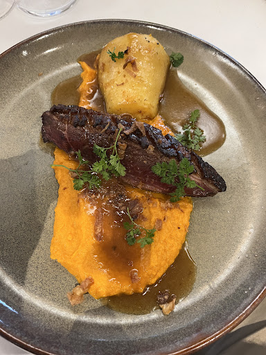 Nous n'avons pas été satisfaite du repas Une entrée fade velouté potiron avec une tranche de lard bouilli Le plat (pouple aïoli) Poulpe caoutchouteux et aïoli sans ail
