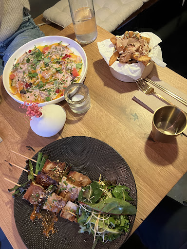 Read moreTasty but expensive. The portions were pretty small. The frites de pommes de terres had nice sauce so was tasty overall but not exceptional. The Brochette Umami had a nice peanut sauce, the pork was tender and overall tasted great. The ceviche dâAmelie was nice, not the best ceviche I have tried but it features a nice balance of freshness, acidity, sweetness and the fish taste. The cod as fish choice was a bit questionable to me though. The atmosphere was really nice, the chopsticks / forks / cups looked beautiful. Overall a nice place to enjoy interesting tastes but the selection is not as great and the place seems a bit more...