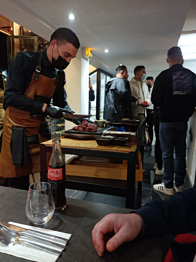 Nous avons pris : Carpaccio de Boeuf (20€) : Le fromage italien a été une belle découverte Terrine de Foie gras mi-cuit (24€) : Fervente du sucré/salé, j'ai été conquise. Le seul conseil a donner, rajoutez plus de toasts, c'est sacrément bon ! Black Beef Cheese pour 3 (150€) : Un véritable spectacle nous avons eu de la part du cuisinier faisant la découpe et la cuisson devant nous. Les différentes cuissons ont été respectées ! Nous avons pu choisir 4 sels différents, 3 accompagnements au choix ainsi que plusieurs sauces. Le plat était joliment présenté, les légumes en accompagnement étaient bien croquants comme souhaité. La purée de pomme de terre a été mon petit coup de coeur parmi eux ! La viande était tendre, il n'y avait pas de nerf contre qui se battre, d'une facilité à découper jamais vu ! Terre et Mer (59€) : La viande était bonne, malheureusement les gambas étaient légèrement trop cuites. Une petite déception également sur la chiffonnade, les morceaux me semblait plus épais