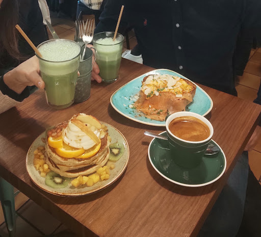 Read moreJe ne comprends pas que les gens fassent la queue pour ce lieu. Brunch service express, froid concernant le salé brioché poisson, pourtant censé être chaud. Plat impossible à apprécier froid. Les jus corrects, pour moi c'était ok, pas pour la personne qui m'accompagnait qui pense que ce n'était pas des fruits frais ( je ne me prononce pas sur ce point). Les pancakes une odeur d'œuf marqué, comme si la date était avancée. Le mascarpone très bon, mais une quantité limitée pour réussir à masquer le goût des pancakes qui de plus manquaient cruellement de fruits. Plus de fruits et un coulis à l'intérieur des pancakes auraient été appréciés car ils étaient malheureusement secs et non-savoureux, notamment avec ce goût fort d'œufs.. Pourtant je suis extrêmement gourmande, c'est dire. Les fruits mis dans le paraître, autour des pancakes, certains ceux en petits dés étant des fruits en conserves et, en quantités infimes. Une erreur de la part des serveuses concernant une boisson chaude et facturée en supplément. D'autant qu'il avait été demandé d'ajouter de l'eau à un prétendu allongé et cela fut expressément refusé (quel esprit écologique, l'absence de sucre avec la boisson n'était donc pas pour cette cause ...). De plus on se sent pressé par les serveuses pour tout, commander, manger, et à peine fini il faut vite vite partir. Vraiment aucun plaisir en venant dans ce lieu. Grande déception, les photos et commentaires étaient pourtant prometteurs. À croire que les gens n'ont aucun palais. Les bons brunch à Montpellier sont rares mais il y en a un certain nombre et, qui d'ailleurs respectent leurs clients en prenant leur réservation et laissent le plaisir de prendre le temps de savourer une bonne cuisine. Dommage. Là, ça me paraît être un lieu Instagrammable, sans saveur, qui ne pense qu'à faire du fric. Je fût invité par la personne qui m'accompagnait mais, même invité je déplore ce lieu qui m'a fait perdre mon temps et m'a laissé sur ma faim !!. Je met deux étoiles à l'ambiance, pour les jolies plantes qui amènent un peu de chaleur à...