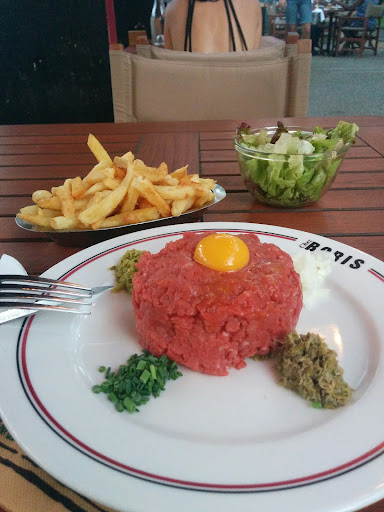 First of all, good burger. We arrive about 8:30 pm on the 26th. We ask the waiter in French if he talks English, he answered a little bit. He gives us the menucard in English. I am a chéf and can to some extent read the French menu, which we allready had on the board before entering the seating area. We order a plate of charcuterie, a burger, still water and a bottle of wine. The water comes to the table right away. Then we wait.... soon after the food comes, a burger for me and a sausage for my girlfriend.... a sausage! We tell this to the waiter and then we wait for the charcuterie to arrive the table. Still no wine... the right dish comes and soon after I ask the waiter about the wine? He answer "You want chardonnay?" I tell him that we just want the wine we ordered, that was not a chardonnay. I tell him that it's getting a little late now. He replied "You want mayonnaise?" I say forget it, and take the third last bite of my burger thinking we never get the wine. But! - then the wine comes. It's not open, so I say to the waiter that brought the wine, that we are just about finished with the food and at this point there's no reason to open the wine. The waiter with the wine was really service minded and offered a discount on the wine. We explain to him about the wrong food and the waiting and how it would be pointless to have wine now. He understand and takes the wine back and when we ask for the bill, we see a discount on the bill. Good service from that one waiter. The others seemed out of balance and we also noticed problems from some of the other tables. And last, it would be a really good idea to serve some butter with the bread. And to have salt in the grinders... We tried three different ones without any salt in them. Kind regards Thomas, headchéf and hotel manager on...