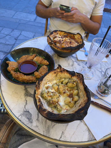 I'm actually sad to leave this bad review, because the food CAN actually be good here. However, we got a pizza that was really charred and had to be returned. The second one was cooked better, but the toppings were clearly put in a rush: messy presentation with some toppings missing and some put in large, and unnecessary, excess - effectively rendering the taste mediocre and extremely salty. I guess Saturday nights are not the best time to go to this place and, when busy, the quality can drop and be largely variable. UPDATE: came back to give a second chance in April 2024. Again a Saturday night and again potentially a bad choice. We booked a table but once arrived we had to wait for a table to become available, long wait to get the food after placing the order, and pizze of pretty low quality. Really small and much worse quality of the dough and of the toppings compared to the...