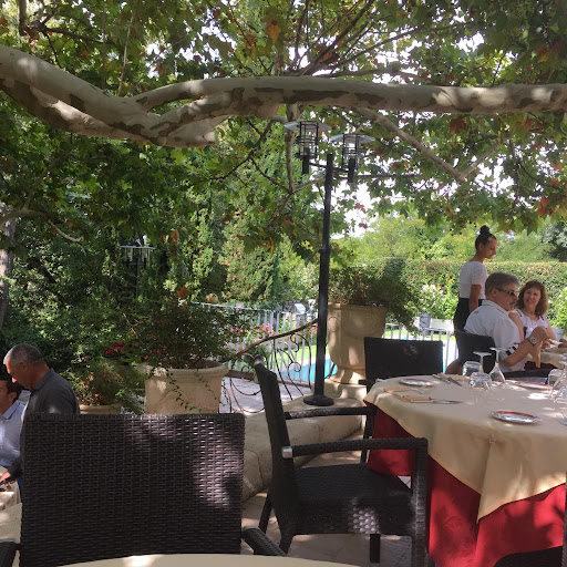 Read moreUne vielle bâtisse dans un parc à l'ombre des platanes. Un déjeuner en terrasse dans ces conditions ça donne envie. L'accueil est très agréable, entre professionnalisme et une visite chez des amis. Nous sommes 2. Nous avons beaucoup salivé en visitant le site internet du restaurant, maintenant il faut choisir. L'établissement propose des "bons cadeaux" pour offrir. Vous pouvez même intégrer un pack boisson à choisir dans une offre multiple, malheureusement ce pack n'est pas disponible quand vous déjeunez, aussi nous choisissons des vins au verre en laissant le sommelier choisir pour nous. 2 verres de vin en guise d'apéritif. Ils sont servis avec des amuse bouche et suivis d'une mise en bouche du jour. Délicieux. Nous avons opté pour le menu Symphonie culinaire simple à 48 euros, entrée, plat, fromage ou dessert. En entrée foie gras mariné à l'huile de noisettes, accompagné d'une petite brioche tiède et d'un mesclun de salades. Tout aussi délicieux. A suivre filet de boeuf Aubrac accompagné de ses petits farcis. La viande est savoureuse et cuite à souhait. Pour finir, une assiette de fromages et pour moi en dessert le cube de brioche façon pain perdu accompagné de petites quenelles de sorbets melon, abricot, pêche. Un déjeuner tout en saveur. Au total pour 2, environ 140 euros avec une demi bouteille d'eau et un café servi avec des mignardises. Une...