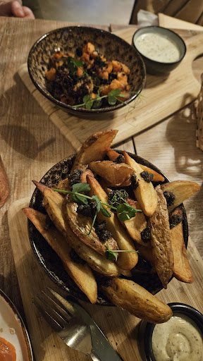 Read moreTrĂšs sympa, ambiance latino, personnel trĂšs sympathique notamment le serveur chilien. Cadre assez bruyants Ă partir de 21h mais pas trĂšs dĂ©rangeant, venez plus tot pour avoir une table bien placĂ© si vous voulez ĂȘtre dans un coin plus intimiste. Nous sommes venu le soir, concept de tapas, belle prĂ©sentation et saveur au rendez vous. Environ 14 euros le tapas (nous avons goĂ»tĂ© le saumon gravlax, le chipirons : seiche sautĂ©, les gambas et les brochette d'agneau) attention 1 tapas par personne suffit si vous prenez un accompagnement car c'est copieux sauf si vous etes un gros mangeur. Pour les accompagnements (10e) nous avons pris des frites, patates douces et chou fleur roties, et potatoes et truffe. Les cocktails sont trĂšs bien aussi (mojito 14e). Addition 135e pour 3 personnes Nous...