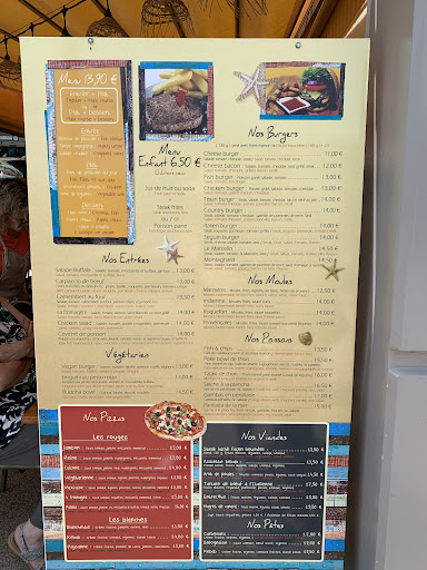 A good place to eat when you are starving and wanted to go back to the beach right after lunch. The atmosphere here is good and not too hot during lunch time. We supposed to order seafood dish since it was in the beach side. As soon as we saw the burger and pizza served by the staff to the customer, my husband and I agreed to try it. We ordered the cheeseburger and Reine pizza, and it was so good. It was such a big portion with a good price. The other customers ordered fish and chips and mussels with fries, it seemed to have a big portion but not really pleasing to us. The server was attentive and friendly. Must try in Marseillan Plage...