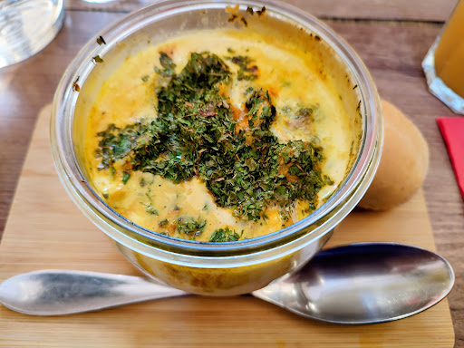 Read moreEnorme coup de coeur pour ce petit restaurant dans cette ruelle du centre ville, cela faisait longtemps que nous n'avions pas été enthousiasmé à ce point ! La cuisine est divine, les assaisonnements parfaitement maitrisés, tout ce que nous avons commandé était très goûteux, du plaisir en barre à chaque bouchée. La patronne (qui est en cuisine) vous accueille avec un grand sourire et très chaleureusement, on se sentirait presque comme chez soi. Le restaurant est petit mais je trouve que c'est ce qui fait son charme et il est par ailleurs très joliment décoré. Le concept de bocaux à choisir et à emporter si vous ne restez pas dîner est très bien pensé et permet de passer emporter ces petites bijoux de plats. Une seule envie : y retourner pour tester chaque plat de la carte et surtout les desserts que nous n'avons pas eu l'occasion d'essayer faute de place disponible dans nos estomacs après le combo amuse bouche + entrée + plat + empanadas. Merci encore pour cette belle découverte et surtout continuez ainsi ! Nous...