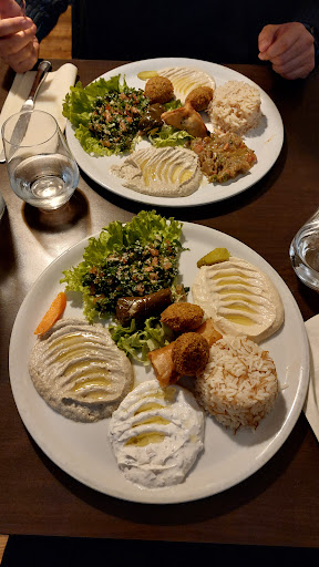 Si vous aimez la cuisine Syrienne, foncez tête baissée !!! Un sans faute du début à la fin.. L'accueil est chaleureux, le personnel aux petits soins et les plats excellents, copieux à des prix très raisonnables. Je vous conseille de goûter l'assiette Syrienne végétarienne composée de plusieurs spécialités telles que : Moutabal ( caviar d'aubergines), taboulé, labane ( fromage blanc, oignons, menthe et huile d'olive), yabrak ( feuilles de vigne farcies), hommos ( purée de pois chiches à la crème de sésame), samoussas au fromage et falafels (beignets de pois chiches)!!! Le couscous merguez est tout aussi délicieux et très bien servi... J'ai hâte d'y retourner afin de découvrir d'autres plats !!! Merci et bravo !! Que du bonheur...