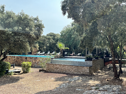 Read moreFirst impressions were odd, The hotel is trying to be a spa hotel but misses by a mile. Large open reception area but eerily empty! The receptionist had very little English and we had very little French so it was a bit Fawlty Towers. The place is very understaffed, it was almost impolite to ask for anything as they seemed to either be exhausted and alone or resting...The pool is nice but not that warm, the jacuzzi looked lovely, couldn't wait to get in but got as far as my ankles and hightailed it out of there due to fear of frostbite. The room was large, with two double beds (a family room I believe), but the patio doors to the balcony had no lock on it and to be honest having spent 3 weeks traveling around the south of France we had accumulated quite a lot of stuff, had our usual iPads etc with us so security wise we felt vulnerable. Dinner that evening was fine, not quite the gastronomic experience we had expected but just ok. There was no atmosphere here at all and apart from the pool area (which is small) very little to do. One thing they should note, please provide umbrellas by the pool and on the balconies for shade! The bathrooms are impossible to use if you have any kind of infirmity, I had knee replacements recently and although the bath looked lovely (huge high sided granite trough) it was totally impractical for a child or an older person with mobility issues. The small set of stepping stools just don't give you that feeling of safety! Also, check out how to close the bathroom doors, no handles! This place could be a great little hotel but the homemade DIY jobs and the lack of staff just don't match the concept or the price you expect to get from the description they give on...