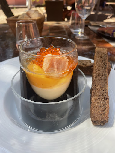 The set menu is priced at around €40 per person; we selected the vegetarian option. It is truly remarkable how completely tasteless a kitchen can manage to make a dish—apparently herbs and spices are kept under lock and key here.