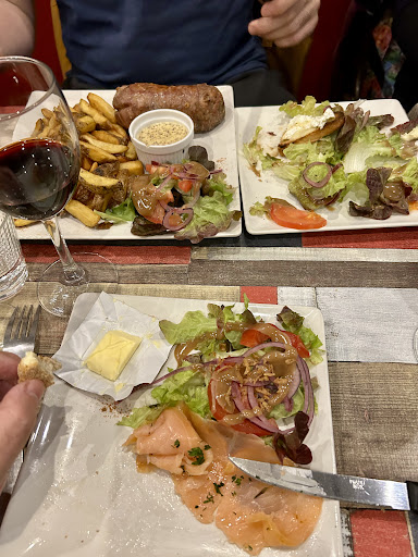 Arrivés à 13h dans ce "charmant" petit restaurant pour la fête des mères nous ne nous attendions pas à finir avec des menaces du patron qui voulait en decoudre physiquement au moment de la note ! Petite explication : 2h30 pour avoir un plat, au bout d 1 heure, on nous précise qu'il manque 2 personnes en cuisine. Chose que nous pouvons aisément comprendre. Le truc c est que pendant ces 2h30 d attente, pas une boisson d offerte ni un mot pour nous prevenir de l arrivé des plats. Finalement on nous précise au bout d 1h30 que l entrecote de veau n est plus disponible et qu'il n'y a plus non plus de coquilles saint Jacques. Bon nous les remplacons par de la lotte et par une entrecote de boeuf que je demande à point. Elle arrive 2h30 plus tard crue. Ma compagne qui elle avait pris un carpaccio et pas d'entrée ne fut pas servie plus vite non plus. A la fin je refuse l entrecote saignante car nous sommes avec un nouveau né d un mois et un enfant de 8 ans. 3h à la table c'est long... Au final mon entrecote arrive correctement cuite, je la mange et nous decidons tous vu l'heure de ne pas prendre les desserts du menu car il est trop tard. Au moment de payer, le patron me dit que j ai mal parlé à ses serveuses ( ses filles) et il me propose gentiment d aller me cogner dehors, quel beau dessert. De la je refuse de payer me sentant menacer et la tout part en cacahuète, la table d a côté, ou les serveuses buvaient d'ailleurs dans leurs bieres, m agresse aussi les yeux bien sur injectés d'alcool ! Bref nous payons sous les menaces de l'assemblée ! Une bien belle experience traditionnelle ! Je precise que nous venions régulièrement dejeuner ou dîner dans ce petit resto, même si beaucoup de plats sont congelés ou sous vide, l endroit nous plaisait beaucoup. Dommage que l alcool affecte autant les gens ! C est bien triste. Bonne chance...