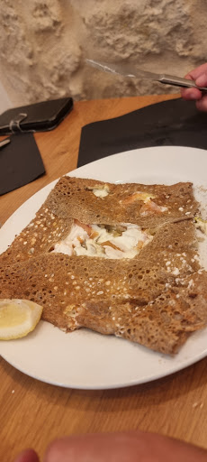 Excellent food set in a very old building. They were quite busy on a rainy afternoon. It was nice and cozy inside and plenty of food options. We had the crepe with the egg inside, salad, butter crepe and coffee. Everything was very tasty. For me the butter lettuce was boring (Americans like some variety and not just lettuce ) and the buckwheat crepe was not to my taste. I enjoyed my...