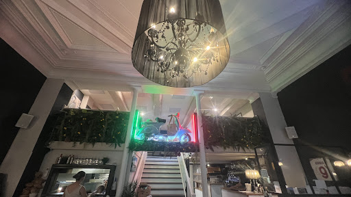 Ambiance : Lorsque nous somme rentré, la première chose qu'on vois c'est le Vespa juste au dessus des escaliers. Symbole emblématique de l'Italie ! Tout fait très beau, les photos d'Italie, mais le seul " bémol " serait que c'était pas de la musique italienne traditionnelle. Cela casse l'ambiance un peu. Mais cela reste très sympathique !
