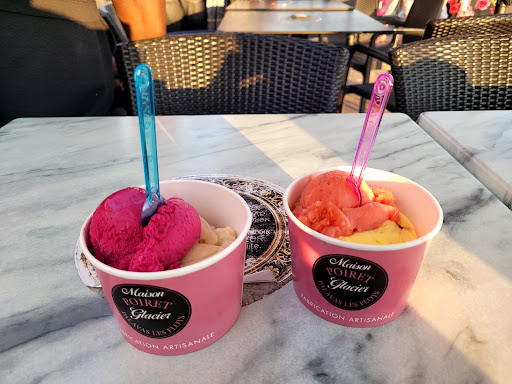 Bonjour, Tout d'abord, je tiens à préciser que je n'aime pas laisser un avis aussi négatif. Je vais donc rester factuel sur notre experience lors de notre visite le 29 aout 2025 en milieu d'apres midi pour trois coupes de trois glaces. Localisation excellente, présentation du glacier globalement bonne, acceuil souriant, un peu long mais acceptable car peu de monde durant notre venue. A noter que la saveur caramel n etait pas présente en vitrine et a été servi en arrière salle. Terrasse extérieur et emplacement excellent au bord du canal mais table non nettoyée malgré a notre demande lors de la commande d une carafe d eau et de verres apportes par une serveuse a notre table. Sur les 3 fois 3 boules commandées, nous avons été plus que déçus et n en avons pas finis 2 sur les 3. Trois parfums étaient vraiment en deca de nos attentes : Strataciella (fade, peu de gout), Vanille (goût chimique d'une glace industrielle) et enfin un chocolat intense (sans goût pour un amateur de chocolat a plus de 90%. Le parfum sorbet chocolat etait bon). Je peux comprendre que l appréciation des saveurs est différente d une personne a l autre mais à ce point sur trois parfums differents ne peut laisser indifférent. N en n ayant pas mange la moitié et ayant demandé gentiment et en toute discrétion a discuter avec un responsable, seul un employé nous à répondu et acceulli. Il nous a fait regouter la vanille et le chocolat intense, mais "saveur" similaire (nous etions 2 a regouter avec le meme constat). Nous lui avons donc laisse 2 coupes a moitié mange en lui précisant que nous posterions notre experience sur google chose a quoi il nous a dit que cela aurait un impact negatif sur le glacier. Pas d autre réaction de sa part, pas un seul geste commercial ou tentative de faire appel a un responsable. N étant pas d une nature a faire un scandale, nous sommes donc repartis en l etat et déçu. Donc, vous comprendrez bien l'unique étoile accordée suite a cette experience. Comme écrit plus haut on peut ne pas aimer mais sur trois parfums et 2 personnes différentes ? Il convient aussi de noter que d autres parfums pris étaient très bon comme Caramel, poire ou encore chocolat sorbet. Cela n a malheuresement pas contrebalance la mauvaise expérience sur les autres parfums. Le fait de ne pas avoir propose une solution, un geste commercial m'a convaincu de poster cet avis. J espere que ce glacier prendra en compte cet avis afin de mieux répondre aux attentes de ses clients...