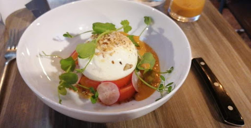 The simplistic decor, low ceiling and cramped table arrangement are even more accented by the depth of flavours of the dishes we were served. Don't get me wrong, I love the atmosphere and the service staff are very friendly. The hard to locate old French Bistro first impression entering the alleyway towards the nondescript entrance (whilst struggling to read the sign to make sure that you got to the right place) is eventually rewarded with the first taste of the poached eggs on a sauce that so lightly describes the sea whilst making sure the creaminess whispers dairy notes nearly unheard over the clattering of the knives and forks all around you. The one piece of fried prawn compliments the sauce and binds to the egg and mushrooms through an unholy matrimony that simply works. Main dishes were pan seared fish and shellfish assortment for the missus and a chunk of slow cooked lamb for me. I went back and forth a couple of times between the two, stealing tasty fish and razor clam bites from under her nose but the lamb won me over and I finished in a stupor of fatty delicious meaty heaven before toppling over and waiting for the dessert. Had to cancel dessert to cut down on the guilty feeling but did have the poached apricots... simply...
