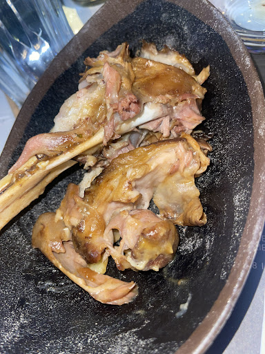 Nous avons commandé un éventail de magret demandé à point, ainsi qu’une entrecôte accompagnée d’un gratin dauphinois et de sauces. À l’arrivée : le magret était bien trop cuit, et ce que nous pensions être une entrecôte s’est avéré être une basse côte, servie de façon bouillie, sans aucune texture ni saveur. Le gratin dauphinois était beaucoup trop poivré, et les sauces très salées.