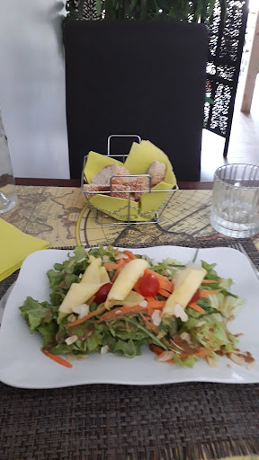 Convivial venue with a terrace & a short menu of Caribbean-inspired dishes, plus veggie options .