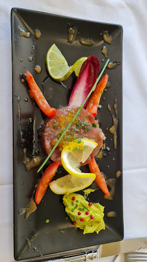 Un dimanche ensoleillé et une terrasse fermée bien remplie, voilà pourquoi nous avons bien fait de réserver une table pour quatre. Les menus sont alléchants mais le premier prix à 32€ n'est servi que le midi en semaine. Le menu au dessus a intérêt à nous surprendre. Et en effet, il y a du choix aussi bien sur les entrées que sur le plat principal et les desserts et chacun y trouve son compte. Mais que c'est long pour venir s'occuper de nous. Des amuse-bouches nous sont offerts pour nous faire patienter. Enfin, notre commande est prise sans qu'on ait compris pourquoi il y a tant de serveurs qui sont passés à notre table sans prendre notre commande. L'entrée, un tartare de thon est succulente et le vin local, un picpoul, l'accompagne très bien. Mais là encore, il se passe une éternité avant qu'on nous amène le plat principal. Ma pièce de bœuf ne souffre d'aucun défaut de cuisson, sa sauce champignons est gouteuse et l'accompagnement est réussi. Attente interminable de nouveau malgré de nombreux clients partis à cette heure bien avancée dans l'après-midi mais le dessert nous la fait un peu oublier. Le café est aussi très long à venir ainsi que l'addition. Pour 50€ par personne vin et café compris, il n'y a rien à redire sur la présentation et la saveur des plats. Par contre, le service à été beaucoup trop long et les quatre heures passées à table gâchent un peu le résultat. Espérons que cela était exceptionnel parce qu'on peut légitimement se poser la question du même repas pris en pleine...