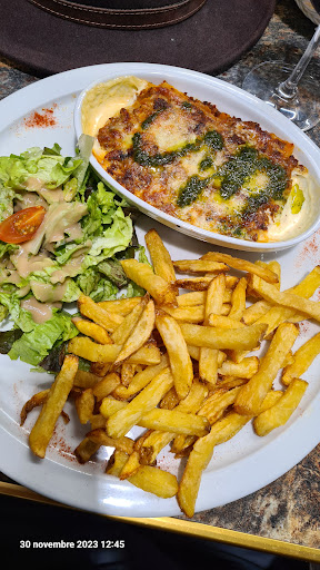 Read morePremier repas dans cet établissement. Un accueil sympathique et souriant. Un choix de plats, fait maison, trés correct, une formule du jour que je n'ai pas pris ayant eu un repas identique la veille dans un autre établissement. J'ai opté pour les lasagnes qui étaient trés bonnes mais recouvertes d'un nuage de pesto, ce qui pourrait suprendre surtout si on n'aime pas le pesto, pas de mention sur le menu. Ce plat était accompagné d'une salade et de frites, le tout était copieux. Le tout était excellent. Le verre de vin vin supérieur était bon mais annoncé oralement à 5,5€ alors qu'il était à 7€ sur la facture. Mais je pense qu'il s'agit juste là d'une confusion involontaire avec le tarif du vin moëlleux. Le café gourmand porte bien son nom et permet de concilier l'hésitation dans le choix possible des desserts. Le service a été rapide. C'est une...