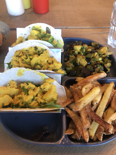 Read moreI went here for lunch and itâs a really nice restaurant! Loved the atmosphere , itâs very modern and chic with great music ! I took the chicken tacos and it has too much curcuma/turmeric :/ (I say this being an Indian!! Too much curcuma that it stains your hand :/) and I took vegetable as one of the side and it was very oily ! But waitress is really lovely and energetic and I think itâll be an amazing place for drinks in the evening or for lunch with colleagues ! Loveeeed...