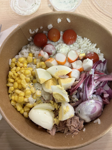 Deuxième expérience en novembre 2022, je vous ai laissé une seconde chance comme demandé. UNE HONTE. Le riz pas égoutté (reste de l’eau), 4 tomates cerise, même pas l’équivalent d’un surimi entier, le thon aurait eu le mérite d’être pesé mais je pense qu’il y avait 20-30grammes, et enfin 1 demi œuf. Le goût n’était pas au rdv. 16€ la salade avec une compote. Je me suis faite livrer livrée cette fois ci donc je ne peux pas juger sur le professionnalisme du personnel. En revanche la qualité de la salade est à revoir. Salade médiocre, quel dommage pour un bar...