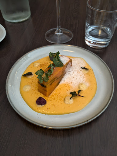 Read moreVous avez passé la soirée en salle à parler de votre cuisine et de vos vins, c'est une façon comme une autre de défendre votre métier finalement pourquoi pas, mais s'il vous plaît, quand vous allumez votre clope pendant que nous mangeons notre dessert, ce n'est absolument pas la fin du service ! On n'est pas là, en train de commenter la prestation d'un plat du jour + café à 12 balles. La cuisine, était excellente ! Et comme nous sommes très bon public, nous n'avons ni allergie, ni intolérance et les rares ingrédients dont on ne rafolle pas, on s'en accommode toujours, c'est donc sans difficulté que nous acceptons le principe du seul menu imposé ou de la découverte du jour. C'est un parti pris très osé surtout pour faire venir les clients dans ce quartier de Montpellier assez hostile. Le tarif est plutôt soutenu: 64€ E/P/D Le service est un peu guindé il est en inadéquation avec ce cadre un peu désuet. Le chef passe une bonne partie du service en salle pour vous expliquer chaque plat et chaque vin choisi. Le tarif des vins est également soutenu. À peine 3 vins en dessous de 40€. Le point négatif de cet établissement : le chauffage. On ne compte pas le nombre de fois où la porte s'est ouverte pour laisser entrer le froid glacial de l'hiver et les effluves de tabac. Le chef sort également pour fumer devant la porte en plein service. Le confort du client est...