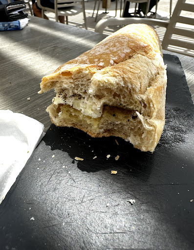Je suis désolée de dire que mon expérience avec ce sandwich au chèvre a été plutôt décevante. Le pain était incroyablement sec, rendant chaque bouchée difficile à mâcher. Ça coûte vraiment rien d’aller à la boulangerie et prendre du pain frais !!! Les morceaux de fromage de chèvre semblaient avoir été ajoutés sans soin, et l'huile d'olive, qui aurait pu ajouter une touche de saveur, avait été entièrement absorbée par le pain, laissant le sandwich sans aucune onctuosité. Malheureusement, ce manque de fraîcheur et de préparation a vraiment gâché ce qui aurait pu être un repas agréable. Ok c’est un bar mais cela n’empêche de proposer des produits frais.