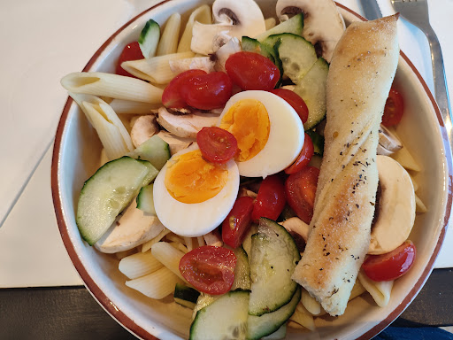 Read moreSi vous voulez bien manger, ce n'est pas ici qu'il faut s'arrĂȘter. Des plats excessivement chers pour la quantitĂ© et qualitĂ© (21.90 la salade avec 4 morceaux de saumon qui se battent dans l'assiette). Les pizzas sont cramĂ©es, pareil pour les frites, le bagel n'en parlons pas. Le goĂ»t n'y est pas du tout, on se serait plus rĂ©galĂ©s chez Lidl. C'est du bas de gamme, mĂ©diocre. MĂȘme chez moi le bagel aurai eu meilleur goĂ»t. Tout semble industriel, c'est insipide. Et le summum c'Ă©tait le morceau de plastique en bonus dans la salade. Nous l'avons signalĂ© en allant payer, pas de geste commercial, rien du tout. Un service a l'image des plats, confus et brouillon. Vraiment je ne recommande pas du tout cet Ă©tablissement. L'expĂ©rience...