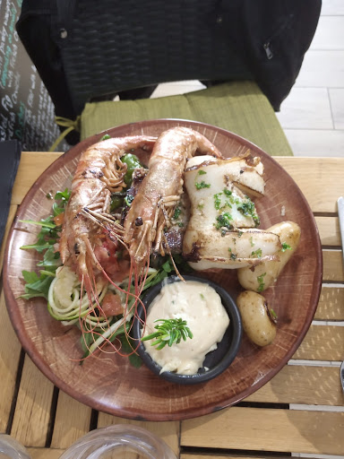 Un régal! Restaurant recommandé sur un célèbre site de notation de restaurants. Nous l'avons choisi assez rapidement sans beaucoup de comparaison. Mais quelle belle découverte! Les plats étaient délicieux, préparés avec des produits frais, bien agencés. Le patron a des propositions hors cartes à nous faire découvrir (la figue cuite au romarin avec une boule de glace se décline à l'abricot ou à la pêche par exemple, ou un petit vin bonus). Nous avons goûté la parillada du Mistral, un délicieux assortiment de sèche, de gambas et de pavé de thon grillés à la plancha avec quelques poivrons avec un très bon aioli et une salade fraîche en accompagnement. Pas une simple salade, je pense qu'il s'agissait de tagliatelles de courgettes et de mâche. Bref un régal. Mon mari avait choisi la souris d'agneau qui était très tendre et goûteuse. Et bien que j'étais largement rassasiée par ces assiettes généreuses je me suis laissée tentée par la pêche cuite. J'ai eu le plaisir de voir qu'elle était accompagnée de chantilly et de spéculoos parsemé : encore un délice. J'ai failli oublier la joie pour moi de voir à la carte un cocktail sans alcool différent du Virgin mojito (c'est pas parce qu'on boit pas d'alcool qu'on a pas envie d'un apéro original). Pour les amateurs les propositions d'alcools étaient longues et variées, malgré la petite taille du restaurant le bar semblait de qualité. Et que dire du personnel, calme et posé, gentil, compréhensif. Apparemment le patron formait sa fille qui aidait au service. Une jeune fille très gentille, efficace et courageuse, à laquelle son père donnait des explications avec beaucoup de patience, bien qu'il soit dynamique en plein rush du service de midi. Pour ce qui de la salle, il s'agissait en fait de 2 petites salles, séparées par une cour privée, mais joignable par la terrasse extérieure. S'il doit y avoir un petit bémol à ce restaurant, le manque de déco, la pièce où nous nous trouvions n'étant décoré que par de grandes ardoises indiquant les menus, une petite touche d'originalité supplémentaire serait...