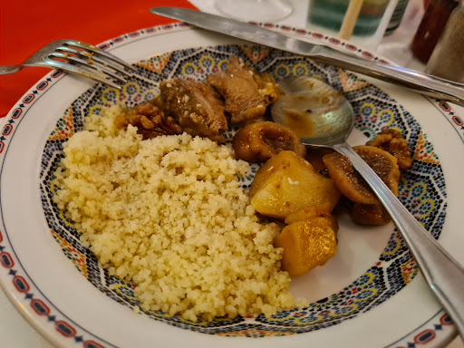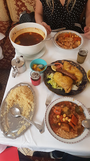 Read moreLe propriétaire a changé depuis quelques jours mais les améliorations se font attendre. Ambiance : marocaine très traditionnelle toujours la même pour le moment mais qui fonctionne très bien. Cependant un petit rafraîchissement, notamment des tissus des fauteuils, serait très apprécié. Les plats : j'ai goûté le couscous avant et après le changement de propriétaire. La recette n'a pas changée et les prix ont augmentés. Le couscous est dans l'ensemble plutôt bien. Plusieurs choses pourraient être améliorées néanmoins : la sauce a un goût trop acide et je ne comprends pas cette couleur foncée, à base de quoi est-elle assaisonnée, épicée, la sauce traditionnelle n'est pas comme ça et on le regrette. La quantité et le prix : excessifs, baisser les deux en même temps serait bien mieux. Même remarque pour les tajines : prix excessifs. Aussi, les 2 rondelles d'oignon cru sur la viande je n'ai pas compris ainsi que la feuille de salade, ça fait un peu cheap comme présentation et c'est dommage parce que les plats et le restaurant ont beaucoup de potentiel. Pour en revenir aux tarifs, les couscous et tajines on est sur des tarifs identiques à l'Essaouira, le restaurant marocain chic du 16e qui donne sur la Tour Eiffel. Je connais tous les restaurants marocains de la capitale je sais de quoi je parle. Des changements appréciables sont pourtant intervenus dans la carte, non encore mise-à-jour, je pense à l'entrée mixe. Bref, ce serait bien dommage de ne pas profiter du changement de propriétaire pour faire (ces) quelques améliorations. Pour l'instant on sent un peu la désorganisation dans la reprise, courage et du nerf. A prendre ou à laisser. Bien...