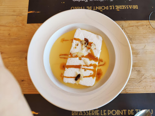 Très beau restaurant, intérieur et extérieur avec cette vue imprenable sur l'étang de Thau. Niché à l'étage de la brasserie Marina Café, le restaurant Le Point de Thau a une place idyllique où vous pouvez admirer le paysage. Spacieux, décoration agréable, le restaurant possède un personnel soigneux, avenant et charmant. De petites moules nous sont servies en amuses bouches, puis viennent les entrées et plats : Des joëls et chipirons frits avec un aïoli maison. La panure est très légère, le tout est très bon. Les seiches entières à la plancha et frites de formes agréablement atypiques sont remarquées par leur goût savoureux. Il s'agit du meilleur plat de seiches que nous avons pu déguster dans les alentours de Balaruc/Sète/Marseillan et de loin. La sole entière servie avec son lit de ratatouille et riz est également excellente. Nous avons terminé sur un dessert à deux puisque les plats sont copieux : L'île flottante, bien alvéolée avec sa crème anglaise vanillée. Le caramel semble être au beurre salé. Toute en légèreté, c'est un dessert qui finit ce prélude d'un bel après-midi ensoleillé en beauté. L'hôtesse d'accueil peaufine cette expérience avec son grand sourire, sa gentillesse et sa voix douce ; quant au chef, juste un mot : Bravo. Nous reviendrons, sans aucun doute.