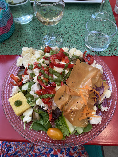 This place is one of the true gems of Montpellier! We have wandered past it many times and have always ogled the magnificently presented dishes on the patron's tables. We decided it was finally time to see what all the smiling faces and packed seats were about. We were not disappointed! The fantastic service is surpassed only by the amazing presentation of each meal which is surpassed only by the heavenly flavor of each bite! If you're a couple and only "sort of hungry", split a salad and you'll walk away completely satiated. If you're a couple who is starving order two and you'll waddle away smiling and ready for a food coma! Although I can't yet speak to the taste of everything on their menu, I can tell you the "Tulip" salad with it's farm fresh vegetables, perfectly cooked chicken and subtle pesto undertones is one that needs to be near the top of your list! I will certainly be back....
