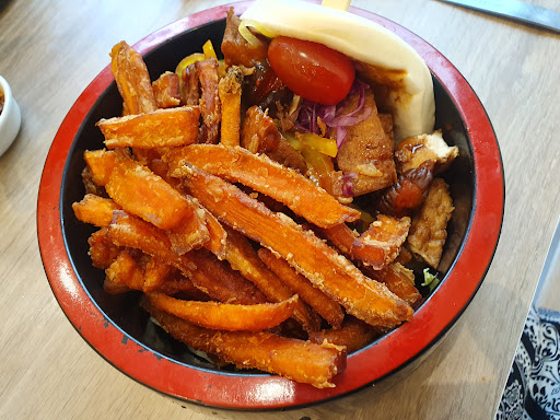 Read moreSmall little bistro with very friendly and helpful service. We've ordered here once and were not too convinced because the food arrived cold, but wanted to give it another try and eating in is definitely recommended. Delicious tofu and gyoza that come in a menu with a Bao Burger that can be veganized (without the mayonnaise) and a bubble tea of choice. The k-pop music was pretty funny too. Only too bad that edenred...