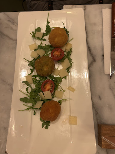 Lâattente entre les entrĂ©es et les plats a de nouveau Ă©tĂ© trĂšs longue. On nous a proposĂ© des arancinis âen tropâ venus dâune autre table, ce qui part dâun bon sentiment, mais nâĂ©tait pas forcĂ©ment utile ou adaptĂ© Ă notre appĂ©tit du moment.