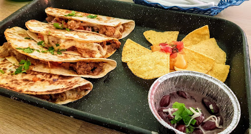 Donc pour un total de 24€, on a eu 4 tiers de Quesadilla avec du maïs qui n’est pas sur la carte et 4 petits tacos Mulas (environs 3 bouchées chaque) couvert d’oignons qui n’est pas marqué sur la carte.