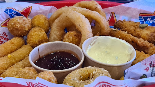 Nous avons pris •Un milkshake deluxe vanille brownie 🥛 •Un virgin piña colada 🍹 • Des americans tater pops (des pommes de terres 🥔 avec de la poitrine fumée 🥓 et sauce cheddar 🧀) •U.S Tacos 🌮 •Un hamburgers Western BBQ 🍔 •Une petite salade Philadelphia summer bowl 🥗 •Chocolate fondue (avec des bananes 🍌, churros, chamallows, mini-pancake 🥞 à tremper dans du Nutella 🍫, du caramel et de la crèmefouettée) •Memphis cofe (café ☕️ avec un ½ donut 🍩, un brownie, un cookie 🍪, une boule de glace vanille 🍦et de la crème fouettée) •Un milkshake banane 🥛🍌 •Un cocktail 🍸 bière 🍺 avec du sirop •Des mozzarella rings •Pulled Pork (parmentier avec du porc effilochés et de la purée avec en accompagnement une salade 🥗) •Ice cream cookie 🍪 🍦