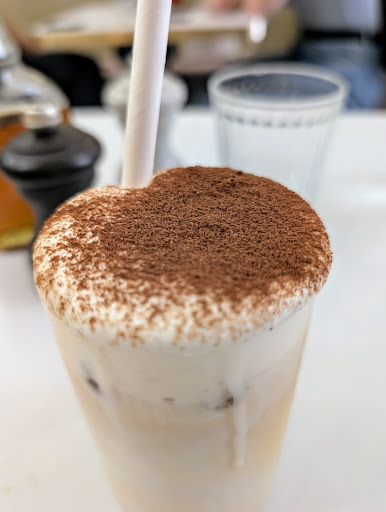 Also, after ordering coffee, I told the waiter we wanted to wait for a friend. It took her sadly nearly 1 hour to arrive, and he was kind and understanding of having us be at the table for that long without food. This is a real plus, because nowadays after covid arrived, restaurants and cafes started to allocate tables for 2 hours and so on. We were lucky this cafe just let people enjoy their food, rather than rushing them out.