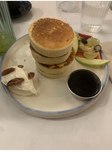 Of course when she arrived, we ordered food. I loved the fluffy pancakes. I rarely had them this fluffy and high. I love when there’s care in the presentation too.