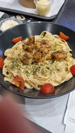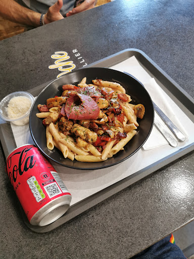 Le service a été rapide, ce point est indéniable. Cependant, j'ai trouvé le personnel hautain. J'avais commandé un plat de pâtes au curry mais j'ai reçu un plat de poulet aux champignons. Lorsque j'ai demandé du pain, on m'a informé que c'était un supplément, ce qui aurait été acceptable si cela avait été clairement indiqué. On m'a dit que ce serait 40 centimes, mais finalement j'ai été facturé 1 euro et ce n’est même pas du vrais pain. En ce qui concerne les pâtes poulet aux champignons, elles étaient trop grasses et manquaient de saveur. Je ne recommande pas...
