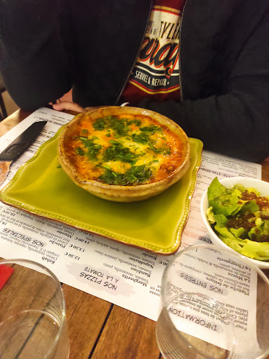 Read moreJe crois que c'est la plus belle des pizzas que j'ai pu déguster en pizzeria. J'avais demandé une végétarienne sans fromage, ils m'ont réalisé un superbe chef d'oeuvre culinaire d'un délice absolument exquis ! Pâte parfait, garniture impeccablement liée, chargée, charnue...c'était parfait ! Quant au service, il est à la hauteur. La patronne on la sent très à cheval sur celui-ci, elle est attentionnée, carrée, prend le temps d'expliquer...Et pour l'ambiance, on est servi : le lieu est très joli et agréable. Je recommande fortement. Allez, un seul détail négatif ou plutôt dommage : la sauce pimentée présentée en ces vulgaires sachets habituels de camion-pizzas ! Avec un standing comme le votre, on pouvait s'attendre à un vrai flacon d'huile en verre, avec les piments dedans...alors s'il vous plaît, tâchez de rectifier le tir avant ma...