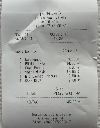 Read moreDans la soirée nous venons curieusement pour manger indien, nous apercevons la cuisine déjà fermée mais le patron/serveur décide de nous « accueillir » en nous disant « ne vous inquiétez pas tout est disponible sur la carte ». Humm ok pourquoi pas?… A partir de ce moment là on sentait le micro-onde qui allait faire tout le boulot, bref on s’installe et la, les prix sont juste pas du tout raisonnable. Une assiette de riz (250g même pas je suppose) avec quelques épices et 2-3 crevettes : 13,90€ ! Non merci. Nous déciderons de quitter les lieux après avoir feuilleté les plats et les prix abusés. De plus ne sachant pas quoi prendre et manger du riz au micro-onde pour quasiment 14€, non merci.