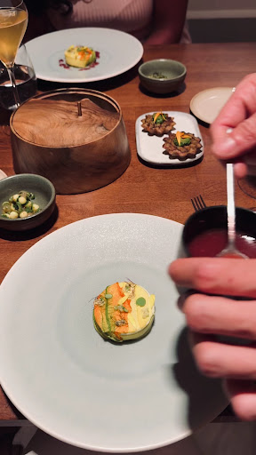 Read moreThis was a bit of a mixed experience. The good is that the savory dishes met and exceeded our expectations. They were delicious. Unfortunately the sweet courses were just okay. It would have been great to have consistency over all the courses. The bad is that there was too much extraneous time between courses. While I appreciate the time to digest there was no good reason for the half hour wait between the lobster course and the pigeon course. The service started out great but as time went on the level of service dropped. The water service was mixed up between us and the neighboring table and we were given someone else’s bill at check out (a mistake we caught). We also had to pour our own water and champagne towards the end of the meal. Michelin star service was also missing when we got up to use the bathroom. Our napkins were not refolded. There is definitely some lack of attention to detail on the service end. However, the savory dishes were so good we could overlook some of...