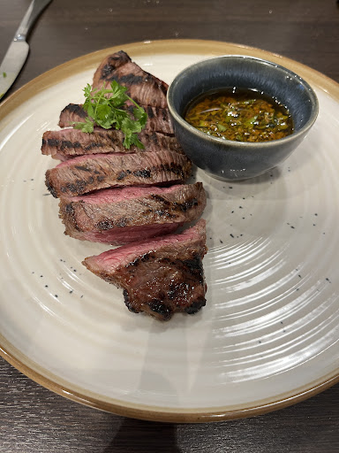Read moreJsuis allé hier soir avec mon collègue c'était la première fois et on voulait découvrir un nouveau resto. Alors pour etre honnête on s'attendait à ce que ce soit bon mais toutes nos attentes ont été dépassées. Déjà le vin blanc moelleux était très bon ensuite le service était irréprochable de la part du jeune homme et aussi de la dame. En ce qui concerne les entrées nous avons été très bien conseillés en effet on nous a expliqué que les entrées sont copieuses et que cest destiné à être partagé donc si vous êtes 2 il vaut mieux peut être prendre une grosse entrée et la partager ou alors vous avez les croquettes qui sont adaptées pour une personne. Enfin ils vous expliqueront mieux que moi n'hésitez pas à demander ils sont très à l'écoute. Ensuite j'ai pris le faux filet j'ai vraiment apprécié la finesse de la découpe de la viande qui laisse apercevoir la maîtrise parfaite de la cuisson qui est confirmée une fois en bouche. La viande était succulente, une viande de caractère et de qualité superieure qui ne vous décevra pas et la sauce que j'ai prise venait sublimer tout ça mais je me rappelle plus le nom de la sauce malheureusement. Autre surprise le dessert, après avoir été bluffé par les entrées et le plat je ne m'attendais pas a un tel niveau de maîtrise des desserts en effet j'ai pris une profiterole et mon collègue un soufflet au chocolat. Toutes les cases étaient encore une fois cochées aussi bien au niveau de la présentation, du goût et je rajouterai aussi la créativité. Je terminerai par remercier grandement le chef, merci beaucoup pour votre cuisine et pour votre accueil et amabilité, vous nous...