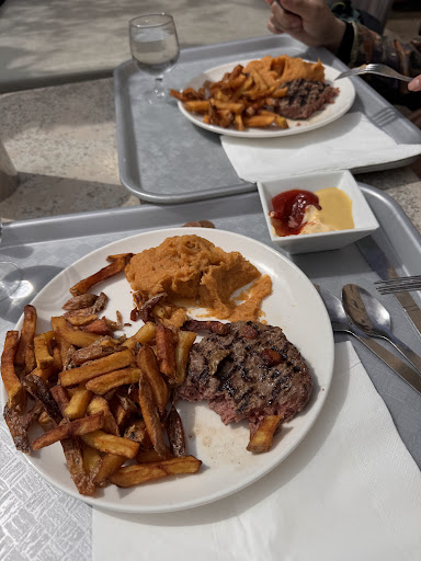Menu etc. Un peu compliqué à comprendre sur le coup avec plusieurs formules et des suppléments selon la viande choisis… et à la carte face à la cuisinière steak hachée 9,90€ etc. Et à côté d’elle aussi des entrées et dessert mais sans prix, j’ai rien compris limite…plusieurs menu de dispo et aussi plusieurs viandes à prix différents et bcp d’entrée avec tous des prix différents. Du coup j’ai pas trop compris et j’ai pas pu prendre d’entrée etc. Faut venir plusieurs fois pour être rôder. Le goût sinon est correct manque un peu d’assaisonnement… dans l’ensemble c’est plutôt frais. La terrasse/jardin est spacieuse c’est agréable lors des...