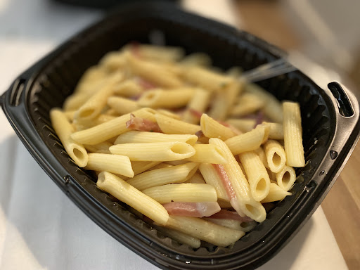 The carbonara were quite âdryâ and the meat wasnât the best quality. And the Caesar salad was really dull. No dressing, and almost no Parmesan. And even though the chicken looked nice it was super dry.